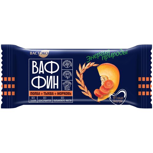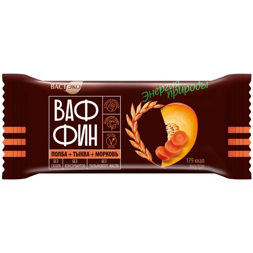 Вафли глазированные ваффин из полбы. Морковь С тыквой В молочном шоколаде. Без сахара, 50 гр.