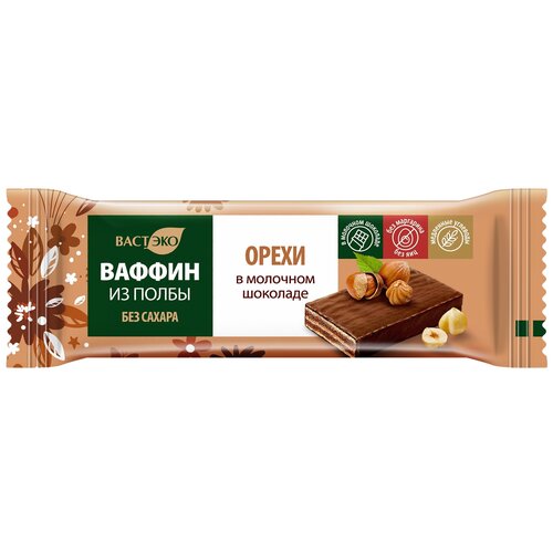 Вафли глазированные молочным шоколадом ваффин из полбы. Орехи. Без сахара, 27 гр.
