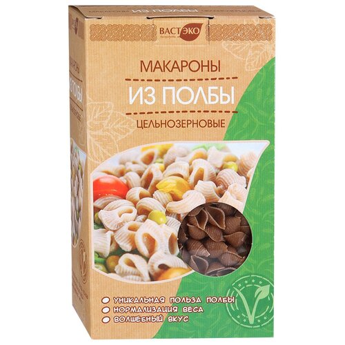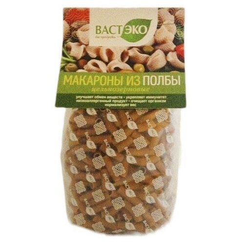 Макаронные изделия из полбы, Вастэко, Ракушки, цельнозерновые, 400 г
