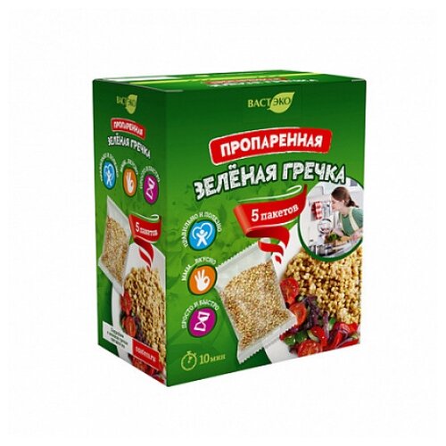 Пропаренная зеленая гречка (5 варочных пакетиков) вастэко, 350 гр