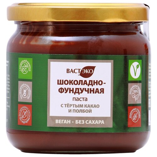 Шоколадно-фундучная паста с тёртым какао и Полбой. Веган. Без сахара, 380 гр.