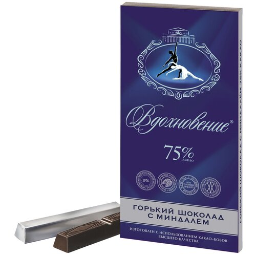 Шоколад Вдохновение с миндалем 75% какао, 100 гр.