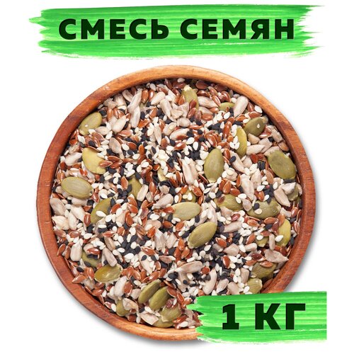 Смесь семян для салатов и выпечки, пищевые семена подсолнечника, тыквы, льна, кунжута 1кг / 1000 грамм, VegaGreen