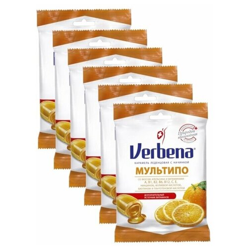 Verbena Карамель мультипо леденцовая с начинкой со вкусом апельсина и витаминами, 6 шт по 60г