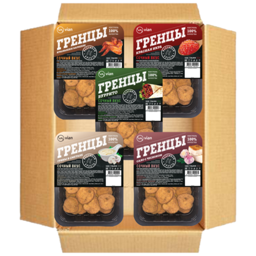 VIAN Гренки ржано — пшеничные микс "гренцы" (крылышки барбекю, красная икра, грибы со сметаной, буррито, сало с чесноком), 5 шт по 100 г
