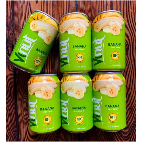 Напиток сокосодержащий Vinut Banana со вкусом Банана, 6 банок по 330 мл.