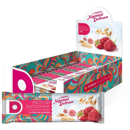 Виталад Мюсли прессованные Батончик "4 злака и малина" в молочной глазури, 40гр, шоу-бокс 24 шт.