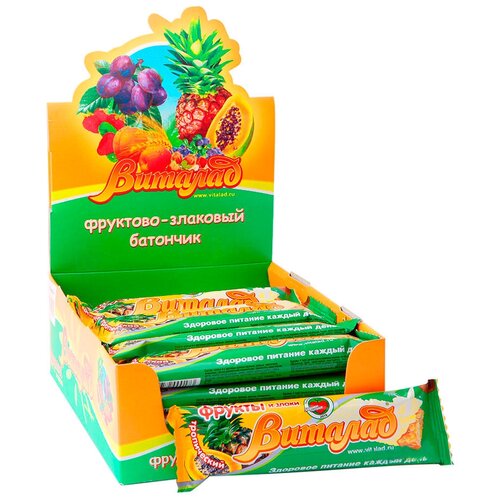 Виталад Мюсли прессованные Батончик тропический, 40гр, шоу-бокс 24 шт.