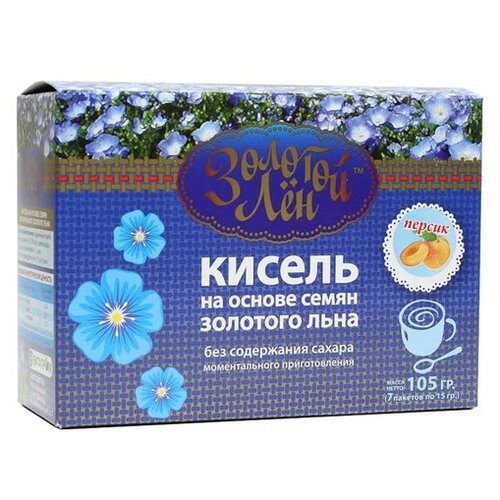 Золотой лён Кисель на основе сеян льна (персик), 7 пакетов по 15 гр, Золотой лён