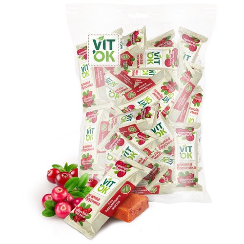 Конфета-батончик фрyктовая Vitok 100% натуральная полезная без сахара с яблочным пюре, клюквой и брусникой, 1000 г