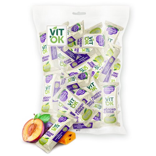 Конфета-батончик фрyктовая Vitok 100% натуральная полезная без сахара с яблочным пюре и кусочками сливы, 1000 г