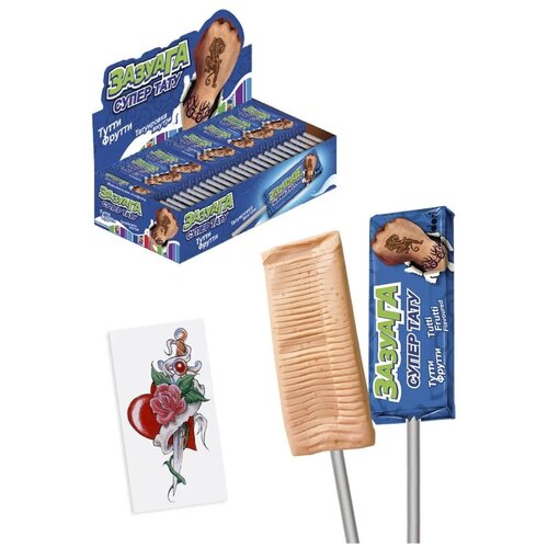Жевательная конфета ВК "Зазуага" с тату со вкусом Тутти-Фрутти на палочке / 50 штук по 11,2 гр.