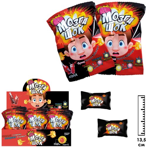 Кислые леденцы Волшебный Кондитер "мозга ШОК" со вкусом Колы / 30 штук по 16 грамм