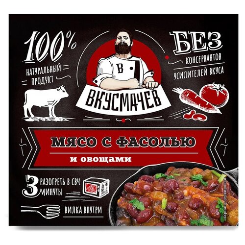Мясо с фасолью и овощами/ вкусмачев/ готовое блюдо/ сухой паек/ 2шт по 250г/ вилка в комплекте