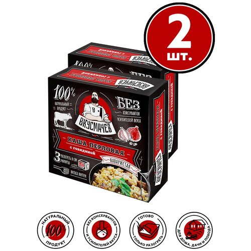 Плов с говядиной/ вкусмачев/ готовое блюдо/ сухой паек/ 2шт по 250г/ вилка в комплекте