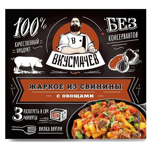 Жаркое из свинины с овощами/ вкусмачев/ готовое блюдо/ сухой паек/ 2шт по 250г/ вилка в комплекте