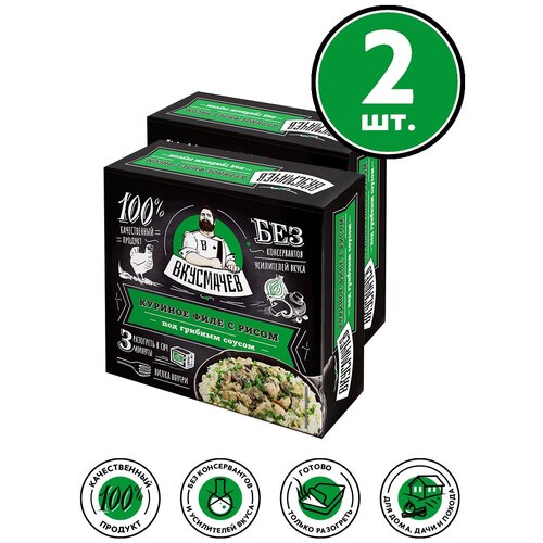Куриное филе с рисом под грибным соусом/ вкусмачев/ готовое блюдо/ сухой паек/ 2шт по 250г/ вилка в комплекте