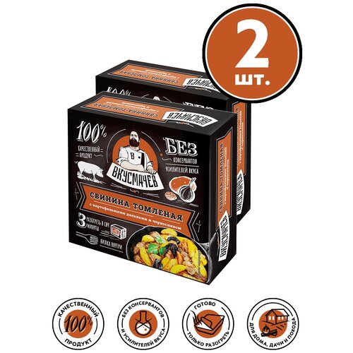 Свинина томленая с картофельными дольками и черносливом/ вкусмачев/ готовое блюдо/ сухой паек/ 2шт по 250г/ вилка в комплекте