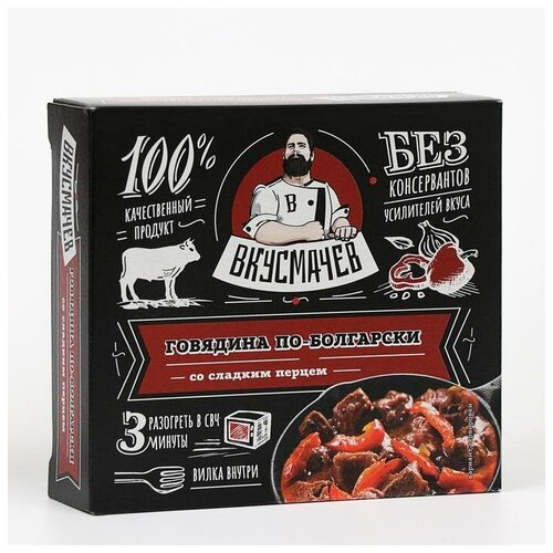 Говядина по-болгарски со сладким перцем/ вкусмачев/ готовое блюдо/ сухой паек/ 2шт по 250г/ вилка в комплекте