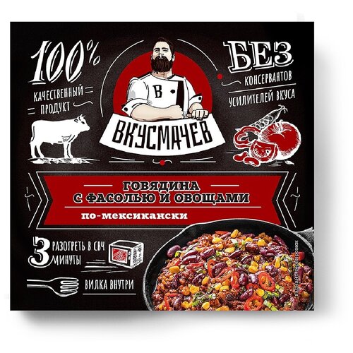 Говядина с фасолью и овощами по-мексикански/ вкусмачев/ готовое блюдо/ сухой паек/ 2шт по 250г/ вилка в комплекте