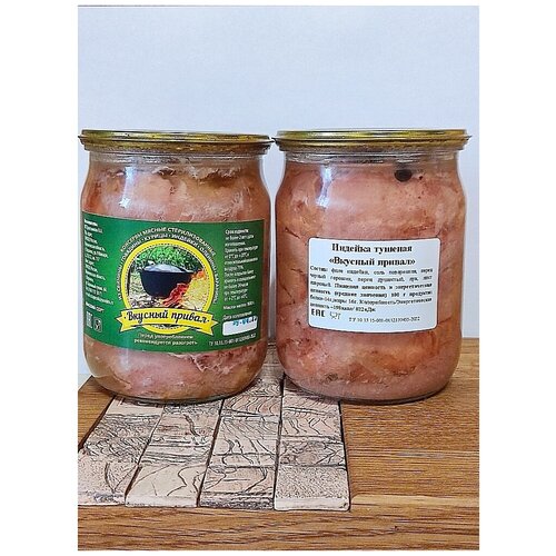 Вкусный привал / Индейка тушеная / Домашняя тушенка / Тушенка / В стеклянной банке / Консервы мясные / Тушенка кусковая