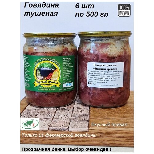 Вкусный привал / Говядина тушеная / Домашняя тушенка / Тушенка / В стеклянной банке / Консервы мясные / Тушенка кусковая