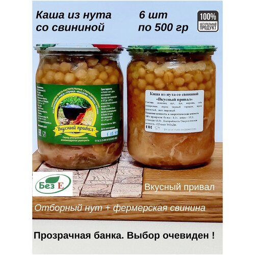 Вкусный привал / Каша из нута со свининой / Домашняя тушенка / Каша / Тушенка / В стеклянной банке / Консервы мясные / Тушенка кусковая