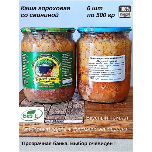 Вкусный привал / Каша гороховая со свининой / Домашняя тушенка / Каша / Тушенка / В стеклянной банке / Консервы мясные / Тушенка кусковая