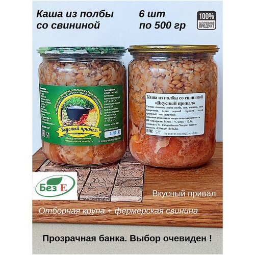 Вкусный привал / Каша из полбы со свининой / Домашняя тушенка / Каша / Тушенка / В стеклянной банке / Консервы мясные / Тушенка кусковая