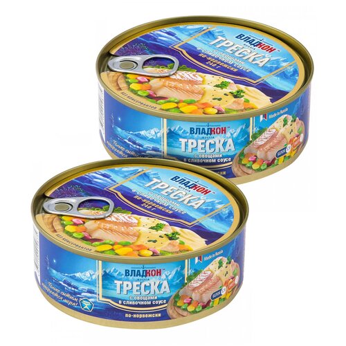 Треска владкон по-норвежски с овощами в сливочном соусе, 240г х 2шт
