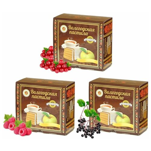 Пастила Вологодская мануфактура без сахара с клюквой, малина, черёмуха 3шт. по 115гр.