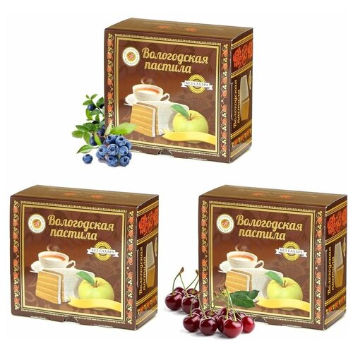 Пастила Вологодская мануфактура без сахара, черника, вишня, классика 3шт. по 115гр.