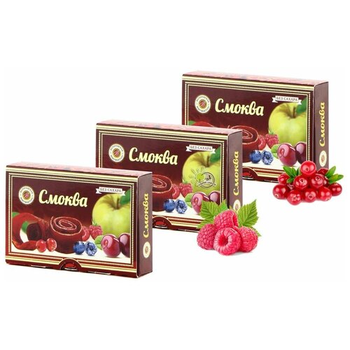 Смоква яблочная без сахара Классика, Малина, Клюква 3шт. по 50гр.