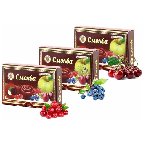 Смоква яблочная без сахара Классика, Вишня, Черника 3шт. по 50гр.