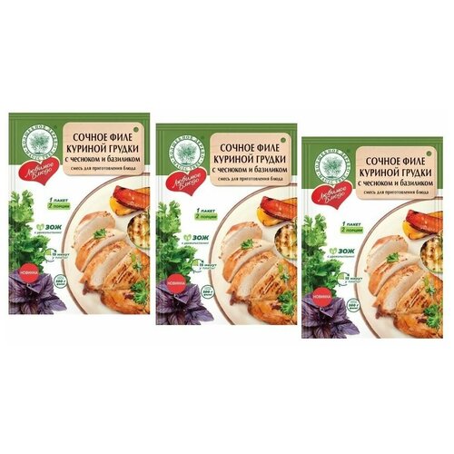 Приправа Сочное филе куриной грудки с чесноком и базиликом 20г Волшебное дерево, 3 шт