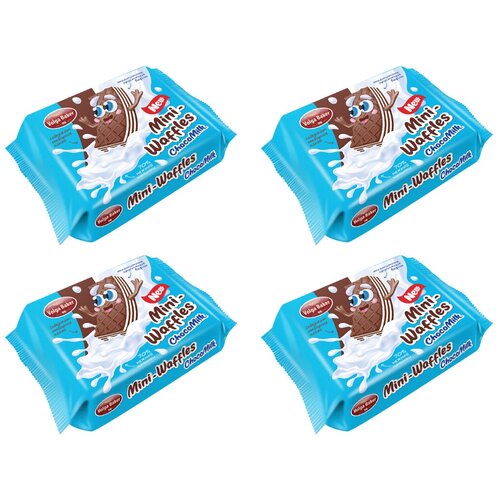 "Мини вафли Волжский Пекарь шоколадные с молочной начинкой, 4 упаковки по 75 грамм."