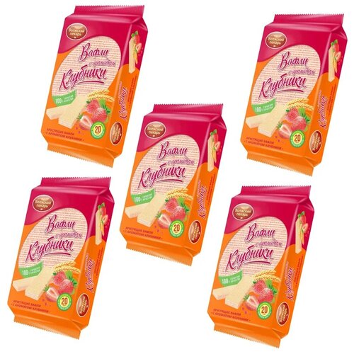 Вафли Волжские Клубничные Волжский пекарь 220 г — 5 штук