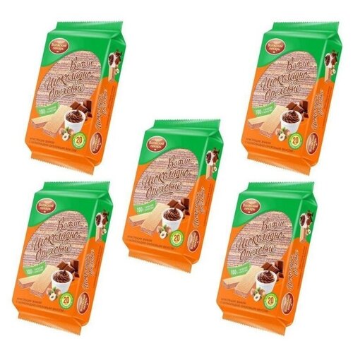 "Вафли Волжские ""Шоколадно-ореховые"" ГОСТ Волжский пекарь 220 г — 5 штук"