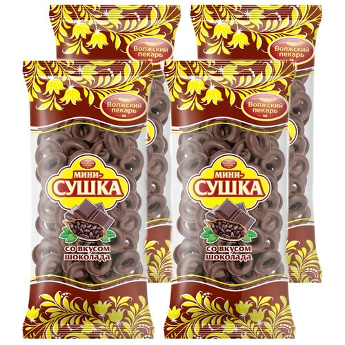 "Мини сушки баранки Волжский Пекарь шоколадные ГОСТ, 4 упаковки по 180 гр."