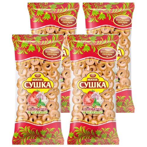 "Мини сушки баранки Волжский Пекарь с томатом и зеленью ГОСТ, 4 упаковки по 180 гр."