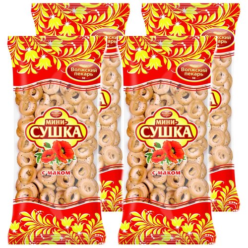 "Мини сушки баранки Волжский Пекарь с маком ГОСТ, 4 упаковки по 180 гр."