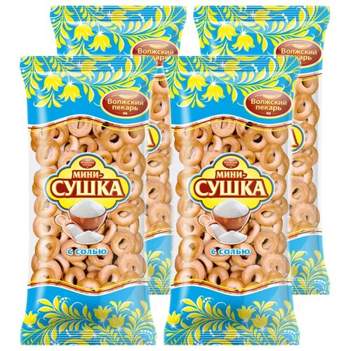 "Мини сушки Волжский Пекарь с солью ГОСТ, 4 упаковки по 180 гр."