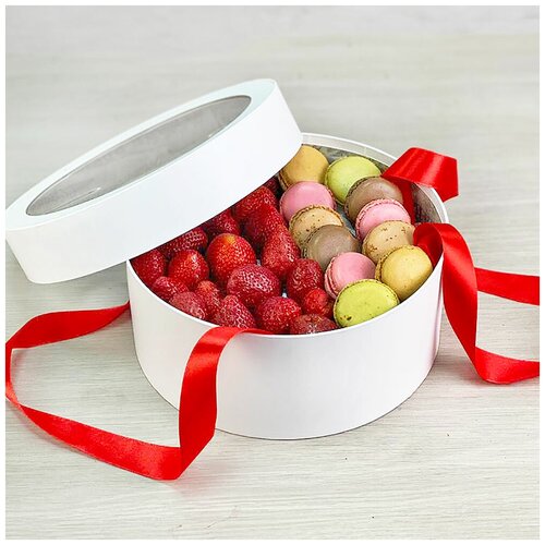 Клубника с макарунами в коробке