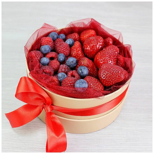 Клубника с малиной и голубикой в коробке