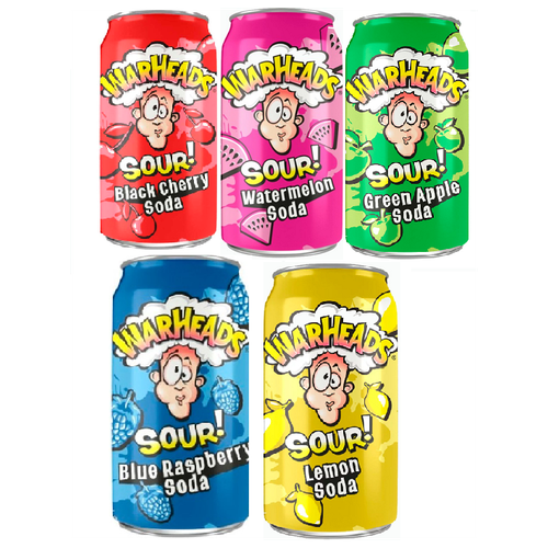 Набор газированных напитков WarHeads Sour! США ( 5 банок по 355 мл)