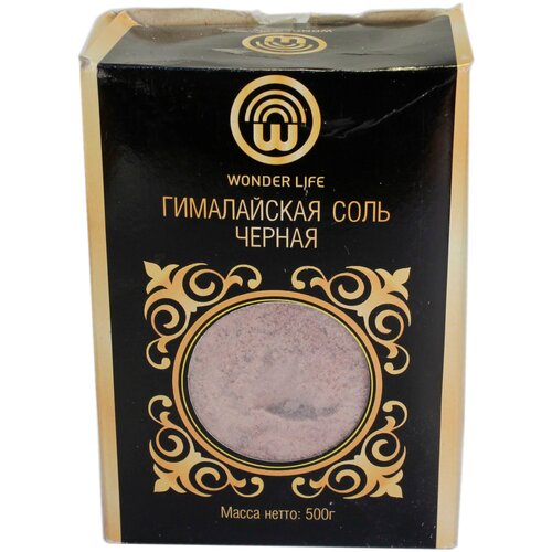 Пищевая черная Гималайская соль Wonder Life Пакистан (помол 0,5-1 мм) в цвет.коробке, 500г