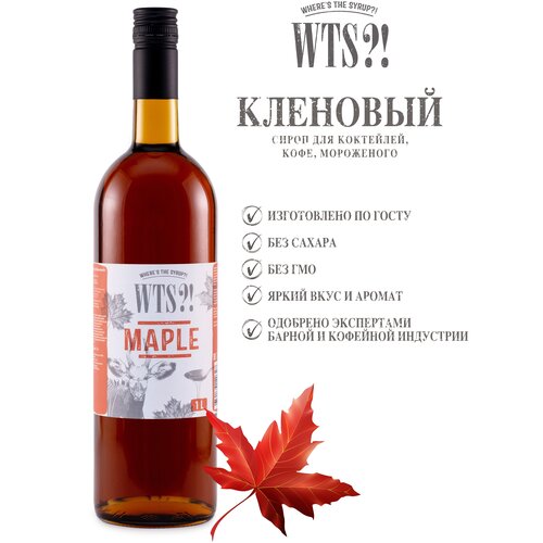 Сироп WTS?! Кленовый 1л для коктейлей, кофе, лимонада, мороженного. Без сахара. Подарок для мужчины, для жены и детей.