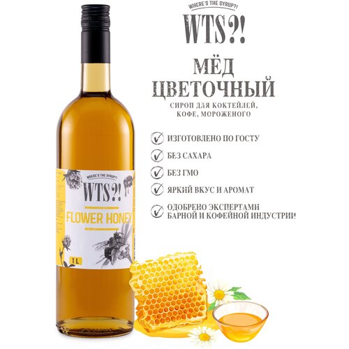 Сироп WTS?! Мёд 1л для коктейлей, кофе, лимонада, мороженного. Без сахара. Подарок для мужчины, для жены и детей.