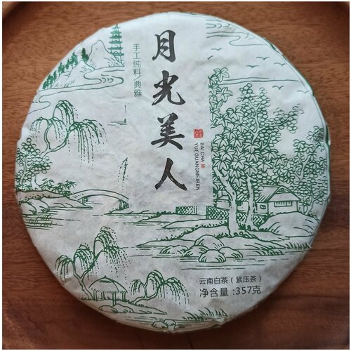 Шэн Пуэр чай 2014 год. Bai Hao Yin Zhen — Белое древнее дерево в лунном свете. Натуральный органический выдержанный китайский чай. Бинча 357 грамм.