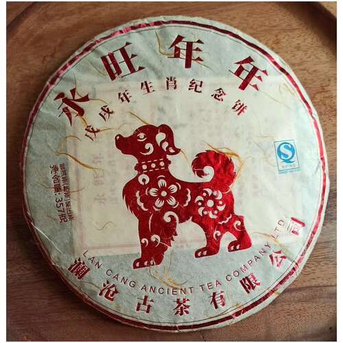 Шу пуэр оригинальный. Древний чай Ланьцан. Новогодний — Собака — 2018 год. Эксклюзивный натуральный пуэр высокого качества. 357 грамм.
